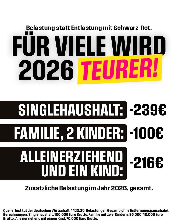 Neue Berechnungen zeigen: Selbst die zaghaften Entlastungsversuche der Bundesregierung werden oftmals durch höhere Sozialbeiträge und den steigenden CO₂-Preis aufgezehrt. Für viele Steuerzahlerinnen und Steuerzahler wird es im kommenden Jahr unterm Strich teurer. Höhere Abgaben führen Deutschland nicht aus der Stagnation. Was wir jetzt brauchen, sind echte Entlastungen für die Bürgerinnen und Bürger und Unternehmen sowie einen konsequenten Abbau von Bürokratie und innovationsfeindlicher Regulierung. Statt Reformen nur anzukündigen, muss Kanzler Merz endlich liefern.